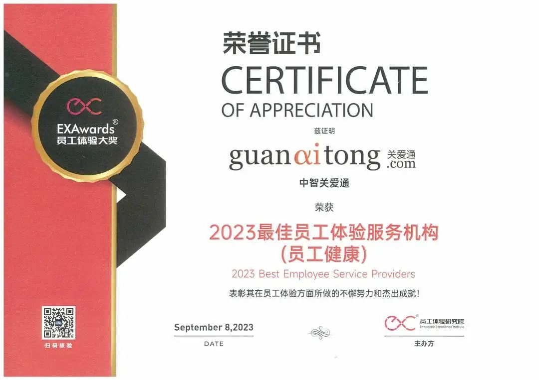 中智EAP荣获“2023最佳员工体验服务机构(员工健康)”